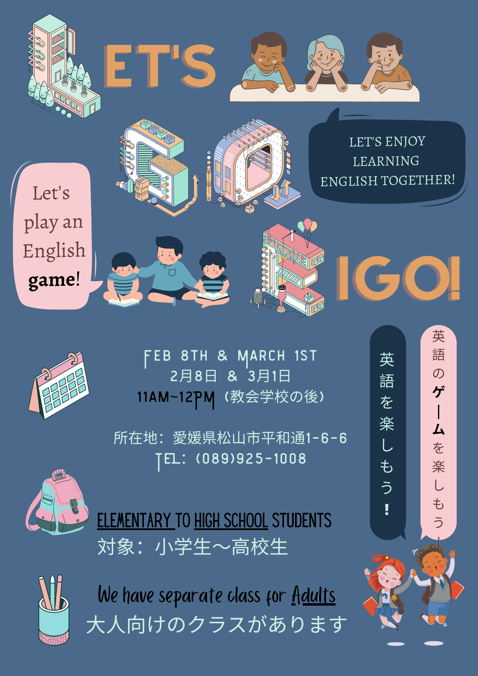 開催日:1月24日(土) 時間:11時半~13時半場所:松山福音センター 〒790-0807 愛媛県松山市平和通1-6-6対象:どなたでもご参加ください費用:子ども無料(高校生まで)、大人200円(後期高齢者無料) 楽し […]